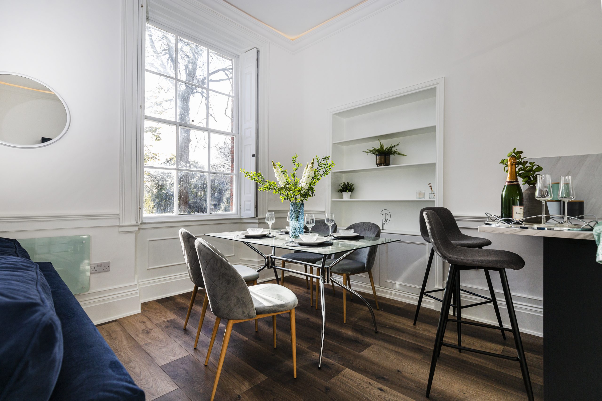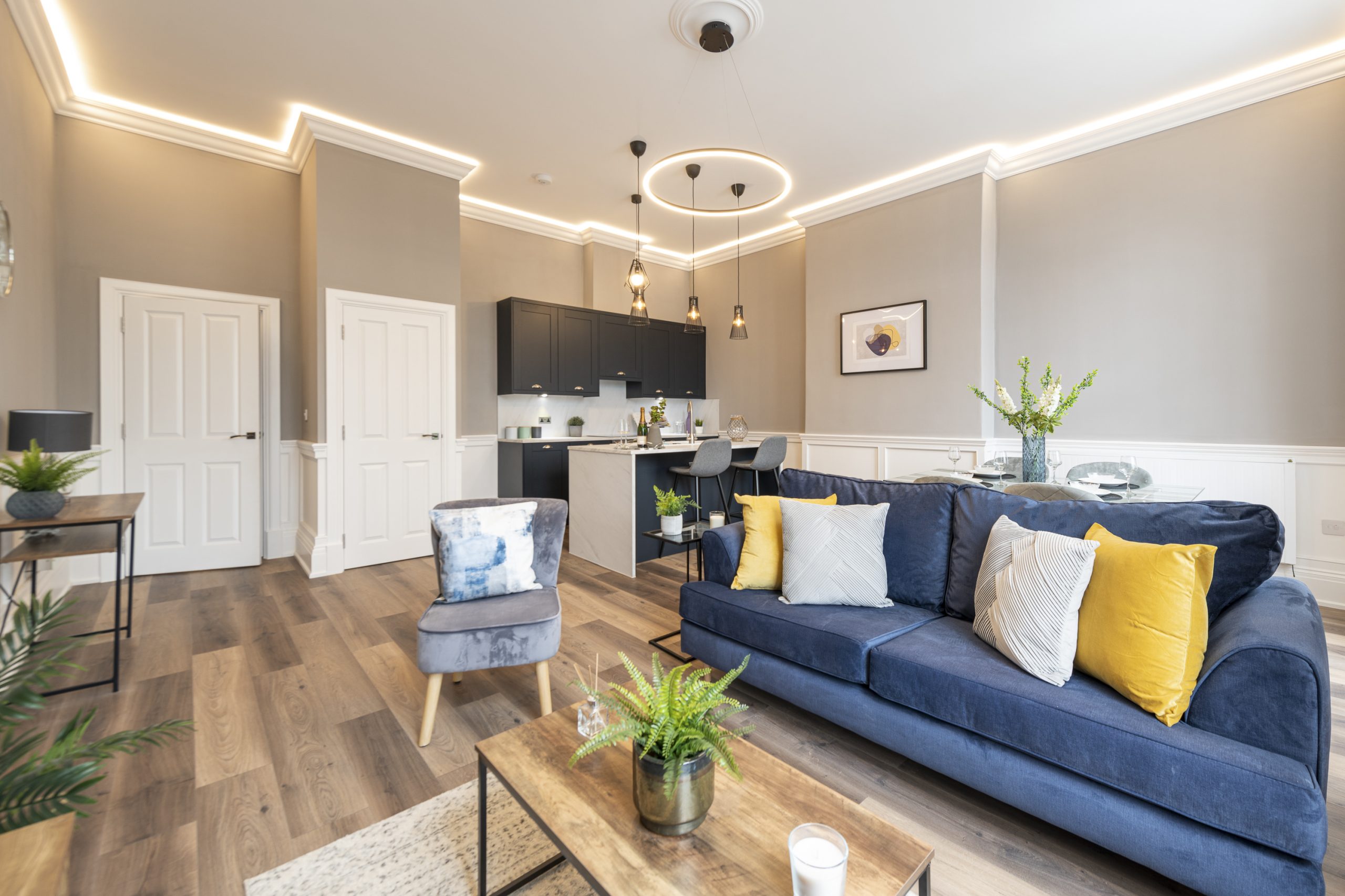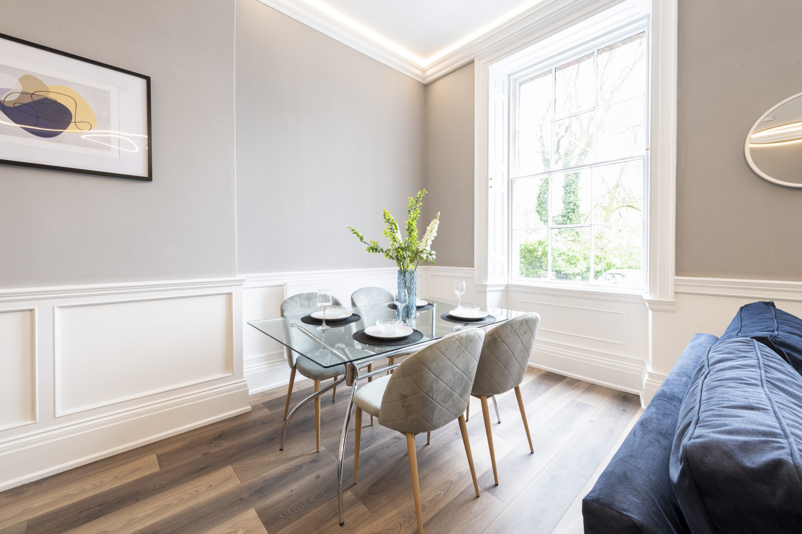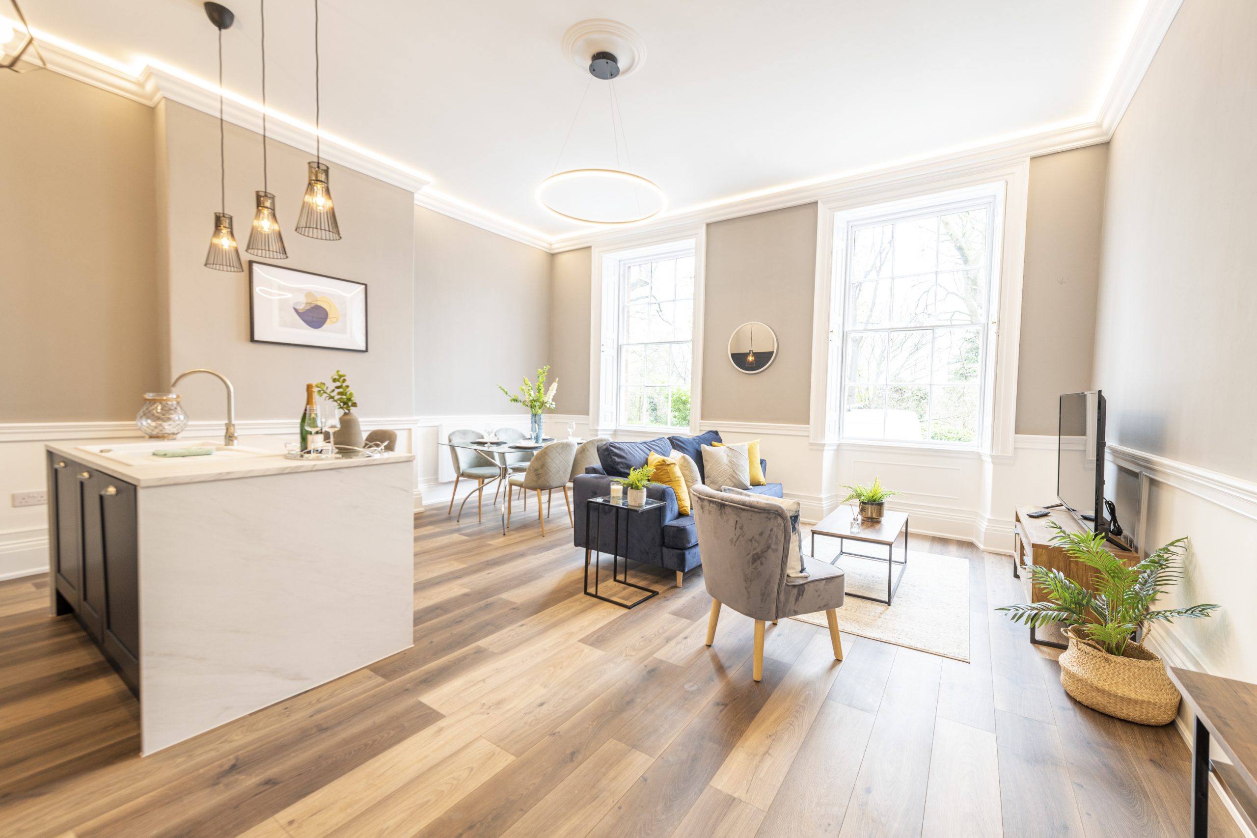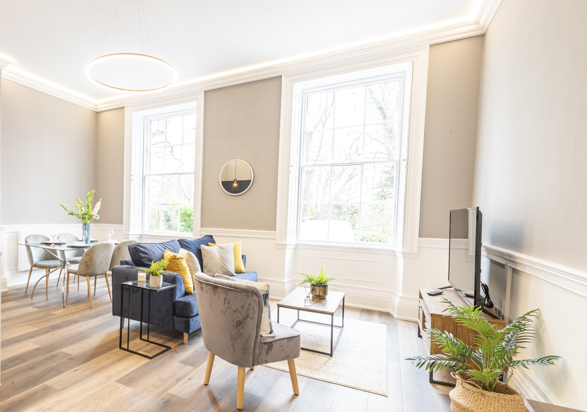 These apartments are situated in the original Georgian manor house, featuring large Georgian windows, most of which have impeccable views of South Parade’s gardens. The stylish interior is inspired by the Georgian architect with wood paneling, ornate covings and shaker style kitchens.